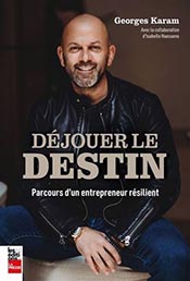 Les affaires vont bien pour  l’entrepreneur Georges Karam celui  que vous voyez occuper un des fauteuils de l’émission télé radio-canadienne  “Dans l’oeil du dragon”. Il incarne à sa manière “le rêve américain” (c’était  avant l’ère Trump bien sûr) lui qui a quitté son Liban natal en guerre pour  tenter de faire fortune en Amérique. Il a débarqué au Québec sans une cenne  noire en poche et ne se laissant pas freiner par l’adversité, à rouler ses  manches et se faire une niche enviable dans les affaires. Récit écrit en  collaboration avec Isabelle Naessens “Déjouer le destin” pourra servir  d’indicateur à ceux qui redoutent de trébucher. Il faut avoir en soi une  confiance inébranlable et parfois compter sur l’élément chance, comme ce mentor  qu’il décrit, homme admirable, qui va consacrer 50 mille dollars à Karam pour  mettre son projet en orbite.