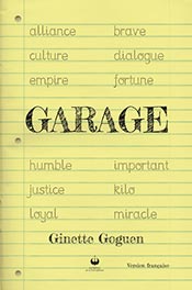 L’ouvrage le plus surprenant de  cette rentrée est Garage de Ginette Goguen que l’on présente en  quatrième de couverture comme “une proclamatrice du vocabulaire”. C’est une  enseignante qui dans cet ouvrage renversant d’érudition, nous fait voir  l’évolution du français et de l’anglaise à travers les âges avec parfois des  emprunts à droite et à gauche. C’est vraiment un bouquin de haute volée qui en  apprendra tellement sur la vie des mots. Assurément que l’on sort de cette  lecture plus intelligent que l’on est entré.